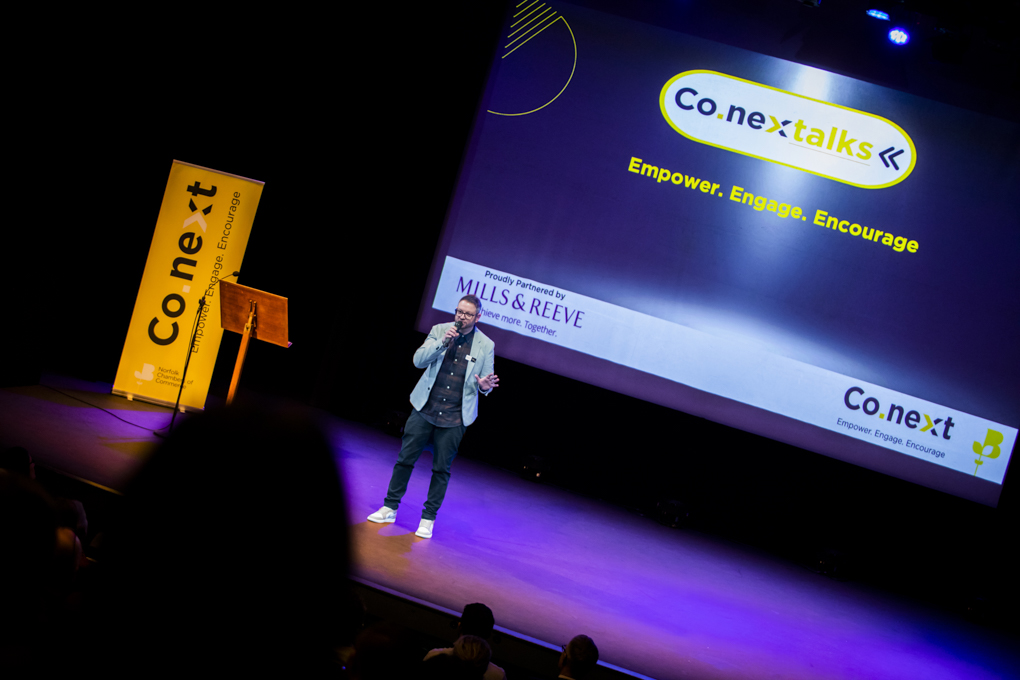 Co.next Talks marked a milestone moment for us – our first-ever event of this kind, created to champion bold ideas, emerging voices and honest conversations within Norfolk’s business community. From the moment the doors opened at The Playhouse Theatre, the energy was undeniable.
