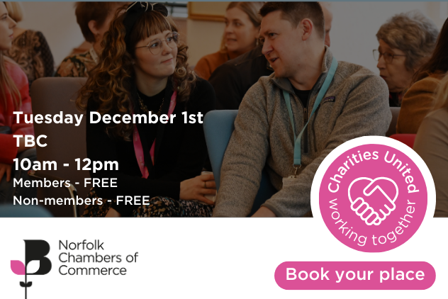 Join us for our next quarterly Charities United on Tuesday December 1st for a space to connect, collaborate, and celebrate the amazing work happening across Norfolk’s charity and CIC sector.