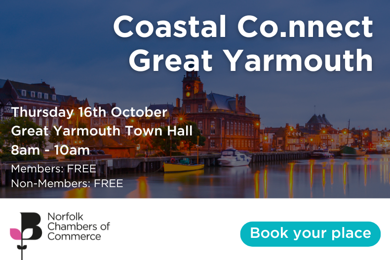 Join us in Great Yarmouth for our popular Coastal Co.nnect. Agenda 08:00 – Event Start and Networking 09:00 – Welcome by Norfolk Chambers of Commerce 09:30 – Networking 10:00 – Event Close