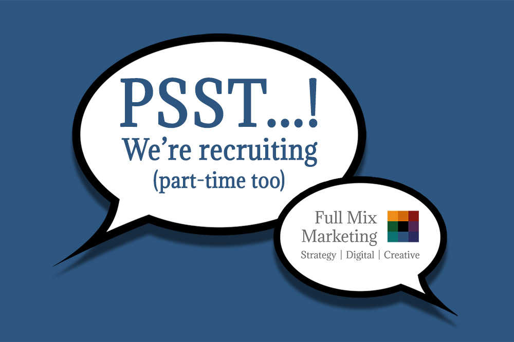 The first is a Marketing Executive – with great written skills – to help deliver PR, social media and other content. More details here: https://fullmixmarketing.co.uk/news/marketing-executive-content-social-pr/