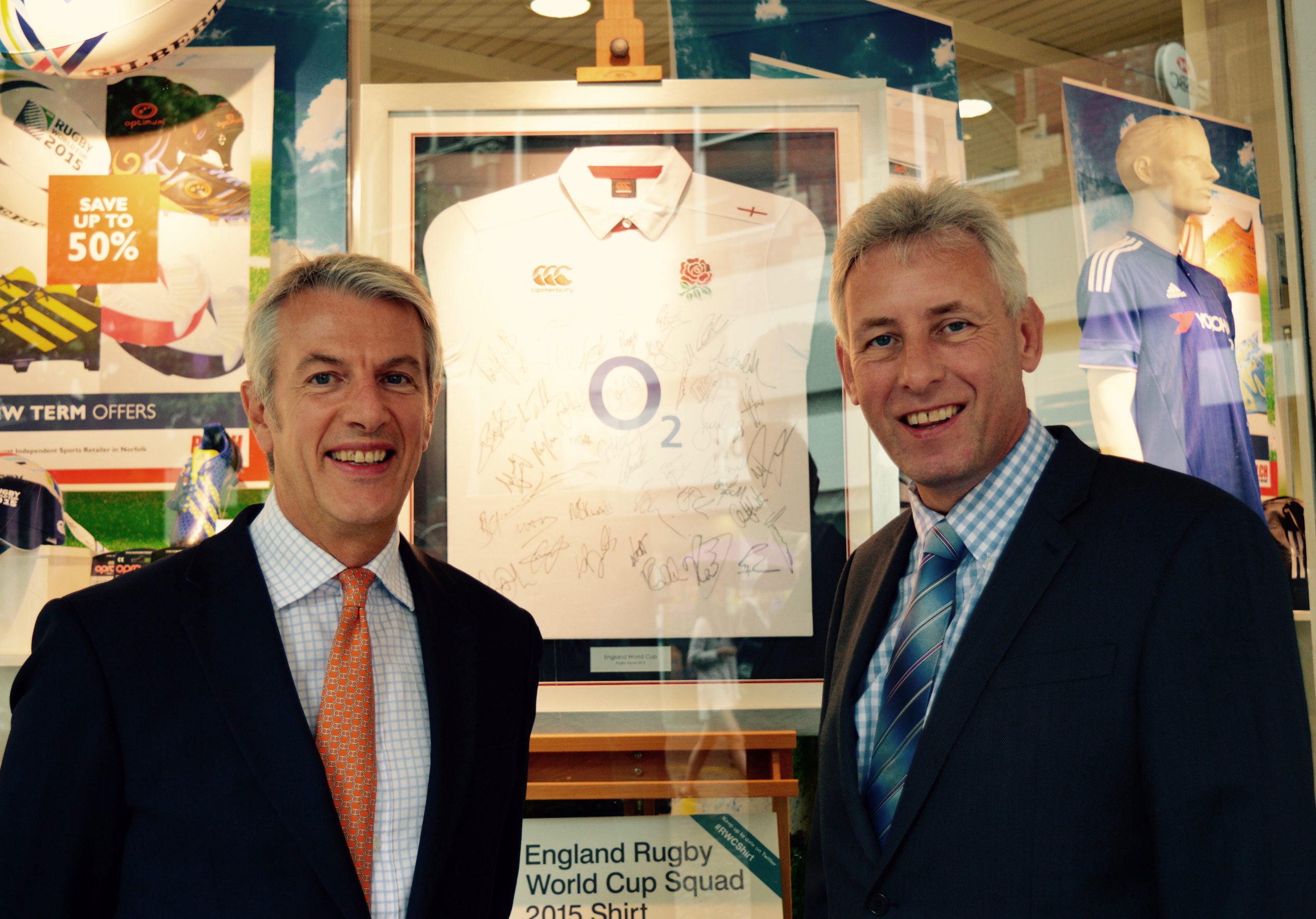 The framed signed shirt is expected to tour through Tom and Ben’s home county touching down in Norwich on October 17th, the starting date of the quarter finals, where it will be auctioned by Horner’s Auctioneers to raise much needed funds to help improve the lives of those affected by cancer. It is hoped that England’s successful winning streak will enhance the value.