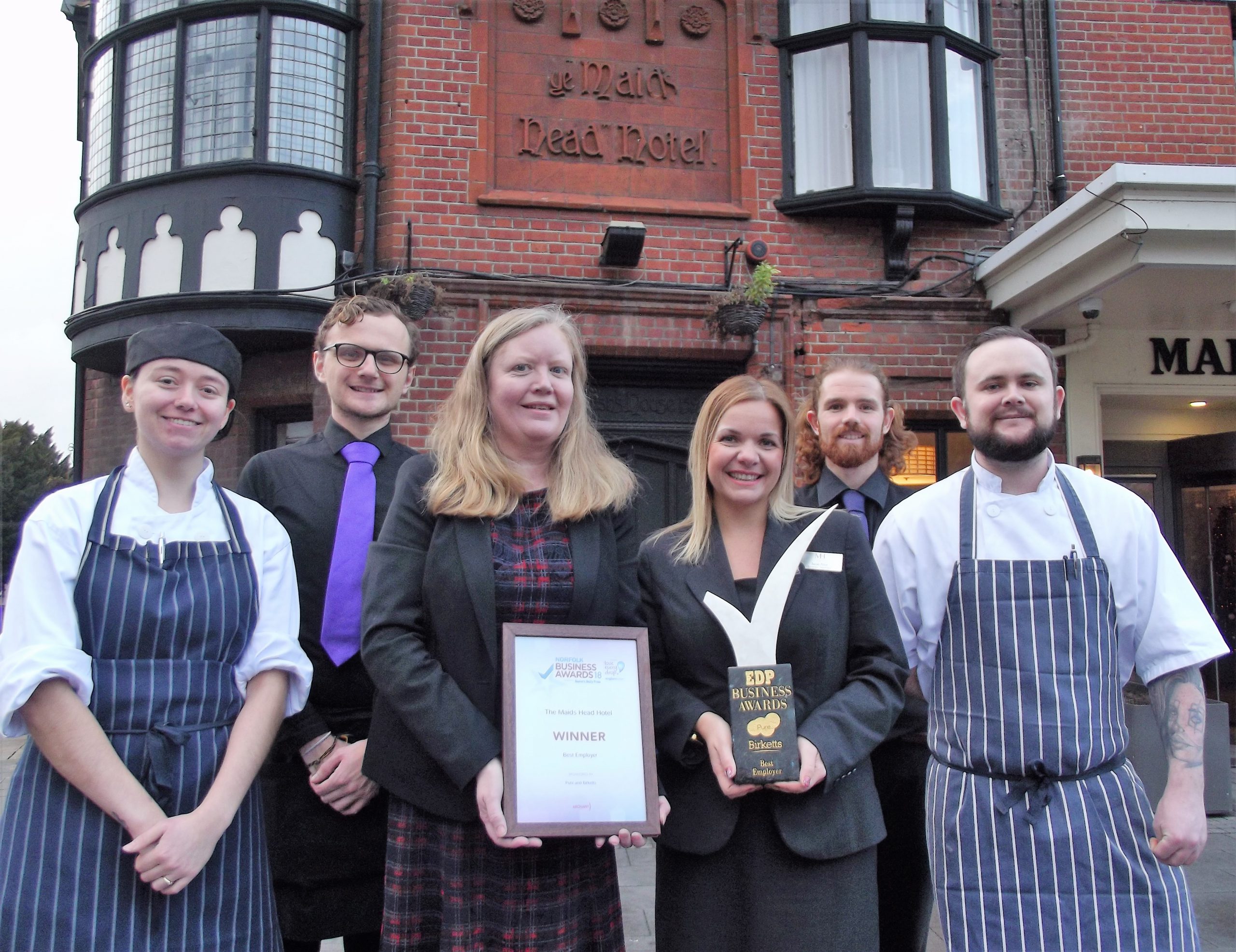 The Maids Head Hotel in Norwich, which claims to be the oldest hotel in the UK, won the Best Employer accolade at the Norfolk Business Awards 2018. The hotel was the only hospitality business to pick up an award.