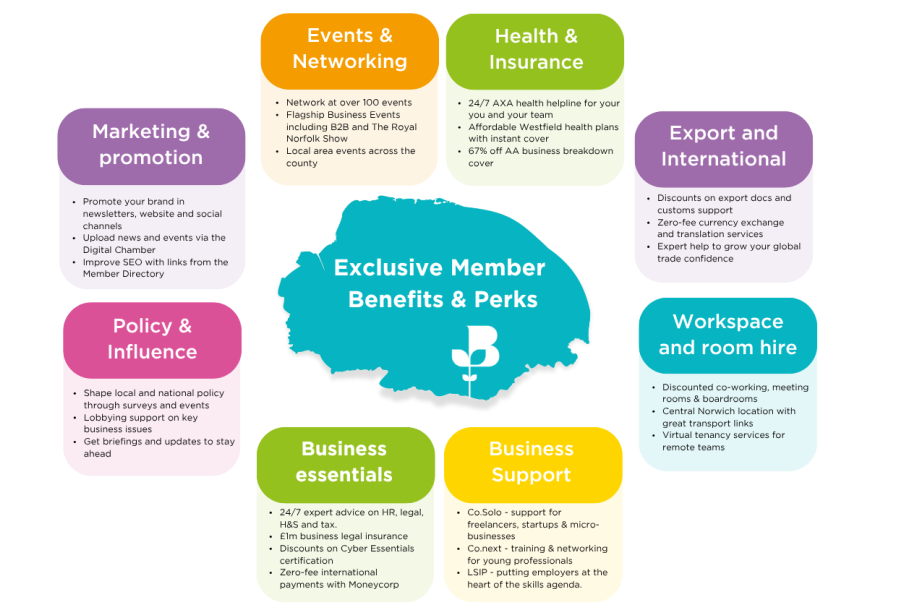 When margins are tight and time is short, you need more than good intentions; you need real solutions. As part of Norfolk’s largest and most active business support organisation with over 700 members, you’ll receive: